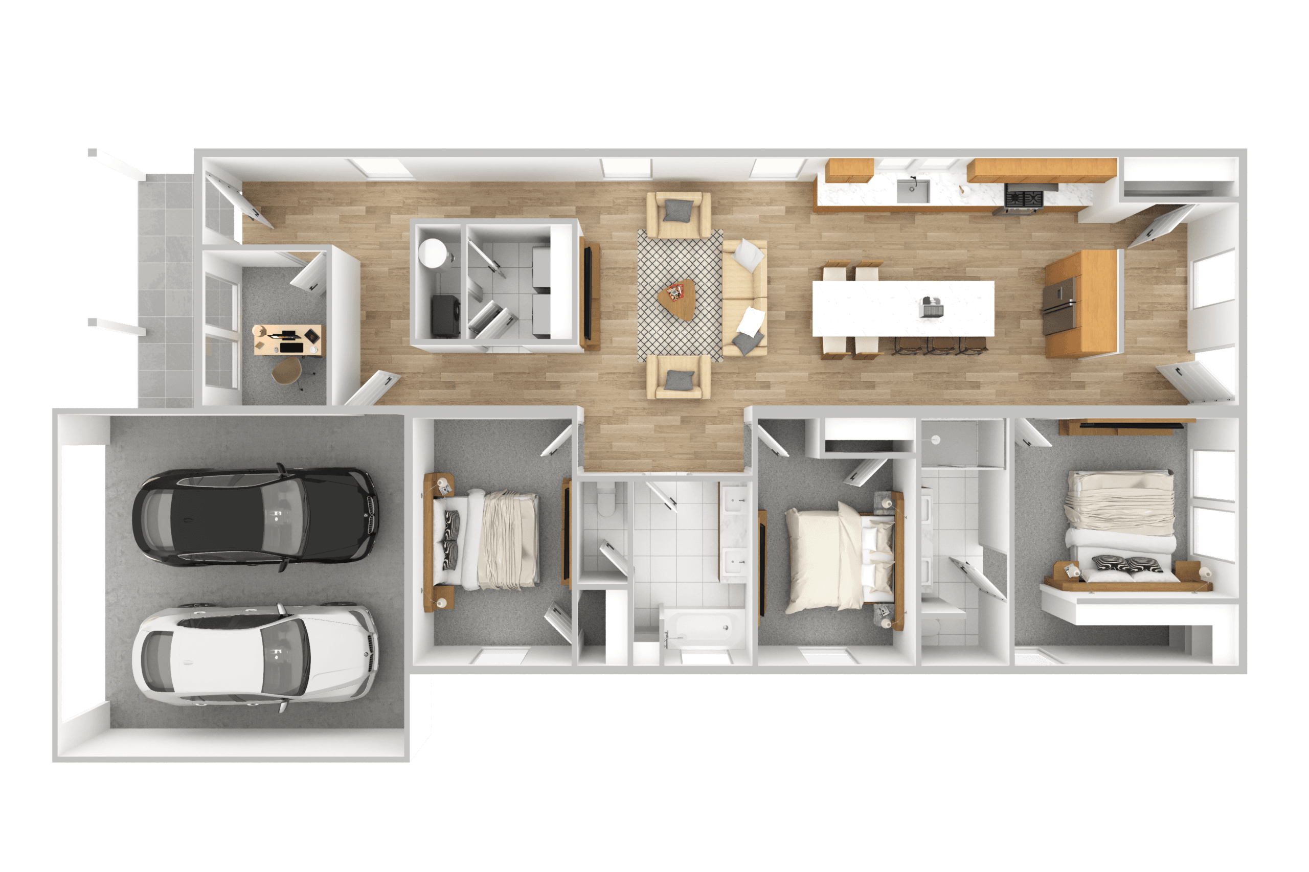 - Luxury flooring and coordinated finishes throughout